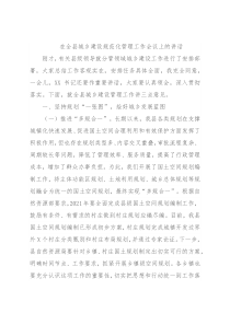 在全县城乡建设规范化管理工作会议上的讲话刚才,有关县级领导就分管领域城乡建设工作进行了安排部署,大家总结工作客观实在,安排任务具体全面,我完全同意,一会儿,XX书记还要作重要讲话,大家要认真领会,深入贯彻