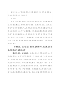 副市长在全市房屋建筑和人员聚集场所安全风险排查整治工作推进视频会议上的讲话同志们:刚才,省住建厅X副厅长对全省房屋建筑和人员聚集场所安全风险排查整治工作情况进行了通报,住建厅X厅长、应急厅X书记对全省房屋建筑和人员聚集场