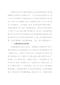 按照这次党史学习教育专题民主生活会的通知要求,我通过**集团公司党委中心组集中学习、个人业余时间自学等方式,深入学习习近平新时代中国特色社会主义思想,特别是学习领会党的十九届六中全会精神,结合公司实际和分管工作,深入进行思考。在