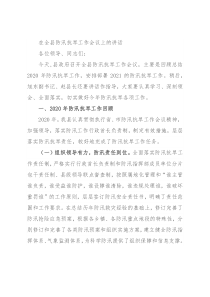 在全县防汛抗旱工作会议上的讲话各位领导、同志们:今天,县政府召开全县防汛抗旱工作会议,主要是回顾总结2020年防汛抗旱工作,安排部署2021的防汛抗旱工作。稍后,旭东副书记、赵县长还要讲话作指导,大家要认真学习、深刻领