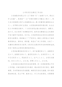 公司党员队伍建设工作总结X机械股份有限公司(以下简称“X”)始建于X年,原名X矿山机器厂,是我国“一五”时期兴建的X项重点工程之一,现已成为我国最大的矿山机械制造企业,最大的重型机械制造企业之一,世界最大的矿业装备、水泥装备制造商和服务商。