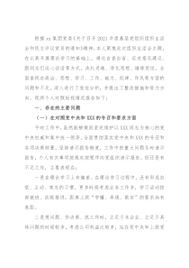 根据xx集团党委《关于召开2021年度基层党组织组织生活会和民主评议党员的通知》精神,本人聚焦此次组织生活会主题,在认真开展理论学习的基础上,通过自查自省、征求意见建议、跟同志们谈心谈话等方式,洗礼灵魂、净化思想、锤炼党性,全面查找在政治、思想、学习、工作、能力、纪律