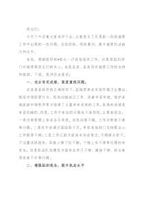 同志们:今天下午召集大家来开个会,主要是为了反思前一阶段城管工作中出现的一些问题,总结经验,吸取教训,提升城管执法能力和水平。首先,感谢组织部*部长一行莅临指导工作,这既是组织部门对城管局同志们的关心,也是县委、县政府对城管工作的支持和鼓励