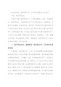 攻坚、乡村振兴的必然要求。二、抓住关键环节,把“驻村团支书”培训好、管理好、作用发挥好关于选派“驻村团支书”的总体工作,刚才梁纪朋同志已作了全面部署,讲得很到位、很详细,大家要认真落实。这里,我着重结合近年来市委组织部开展驻村第