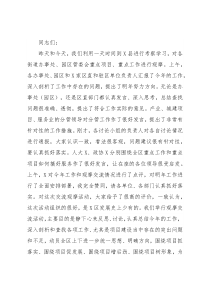 同志们:昨天和今天,我们利用一天时间到X县进行考察学习,对各街道办事处、园区管委会重点项目、重点工作进行观摩。上午,各办事处、园区和X家区直和驻区单位负责人汇报了今年的工作,深入剖析了工作中存在的问题,提出了明年努力方向。无论是办事处(园区),还是区直部门都认真发言、深入思考,总结