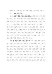 展对象XX名,提交入党申请书XX名。发挥党员模范先锋作用,选派XX名干部到乡村振兴重点村、脱贫村、经济薄弱村开展乡村振兴工作,组织干部职工完成“我为群众办实事”XX件,组织开展新冠肺炎情况防控、全国文明城市创建等志愿
