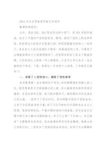 2021年企业预备党员转正申请书敬爱的党组织:去年,我由XXX、XXX两名同志的介绍下,经XXX党组织批准,成为了中国共产党预备党员。期间,接受了组织上的各种考验,我觉得自己的进步还是蛮大的,特别是跟着先进的人一起学习。其实自己之前总是满足于做好一些基础