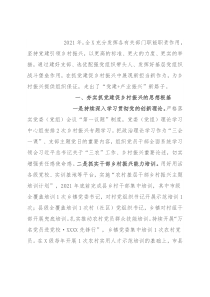 2021年,全X充分发挥各有关部门职能职责作用,坚持党建引领乡村振兴,以更高的标准、更大的力度、更实的举措,通过建好支部、选优配强党组织带头人、发挥好基层党组织战斗堡垒作用,在抓党建促乡村振兴中展现新担当新作为,为乡村振兴提供组织保证,走出了“党建+产业振兴”新路子