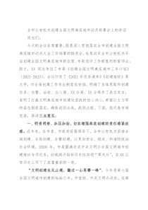 全市公安机关创建全国文明典范城市动员部署会上的讲话同志们:今天的会议非常重要,既是深入贯彻落实全市创建全国文明典范城市动员大会工作部署的推进会,也是动员全市公安机关开启创建全国文明典范城市新征程、夺取迎评工作新胜利的誓师会。刚才,XX同志传达了市局《创建全