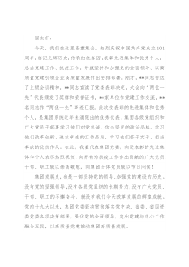 同志们:今天,我们在这里隆重集会,热烈庆祝中国共产党成立101周年,铭记光辉历史,传承红色基因,表彰先进集体和优秀个人,总结党建工作、抗疫工作,并就坚持和加强党的全面领导、以高质量党建引领企业高质量发展作出安排部署。刚才,**同