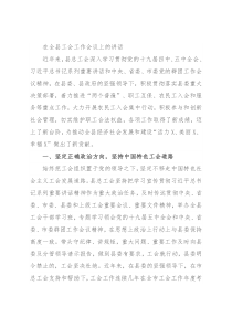 在全县工会工作会议上的讲话近年来,县总工会深入学习贯彻党的十九届四中、五中全会、习近平总书记系列重要讲话和中央、省委、市委党的群团工作会议精神,在县委、县政府的坚强领导下,积极贯彻落实县委重大决策部署,着力推进“两个普遍”、职工互保、农民工入会和服务等重点工作,大力开展农民工入会集中行