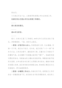 同志们:今天我们开这个会,主要是研究部署全市打击传销工作。先请打传办汇报全市打击传销工作情况。......请大家发表意见。......请**市长讲话。......刚才,打传办汇报了工作情况,**市长和几