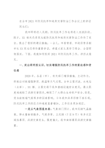 全面贯彻落实。下面,我就如何抓好2021年防汛抗旱工作,讲四点意见。一、突出研判抓认识,切实增强防汛抗旱工作的紧迫感和责任感2020年,各县(市)、有关部门增添措施、主动作为,积极应对极端强降雨、高温等天气过程,全市主要河流、水电站(水库)、XX