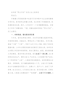 在市委“两大行动”动员大会上的讲话同志们:开展重大项目推进集中攻坚月行动和集中为企业排忧解难专项行动,是市委作出的重大决策,充分体现了市委重实体、抓发展的坚决态度。刚才,X书记作了一个非常重要的报告,对相关工作作了部署安排。下面,我重点就如何落实“