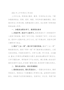 2021年上半年党务工作总结上半年以来,院党委以服务、教育、引导学生为主线,不断加强党的政治、思想、组织、制度、作风和党风廉政建设,落实意识形态工作责任制,统筹推进育人体系,充分发挥了学院党委的政治核心作用。