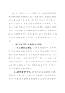 为总体工作思路,持续推进党建体系建设,坚持加强党的领导和完善公司治理相统一,把党的领导融入公司治理各个环节,完善丰富“1+3+N”党建模式,为XX集团改革发展提供强大红色引擎,以优异成绩庆祝党的二十大召