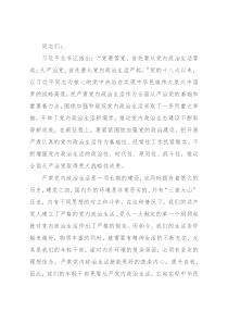 根本性、基础性的问题,关乎党的团结统一,关乎党的生死存亡”。二、要准确把握当前党内政治生活存在的问题(一)一些党员干部“四个意识”树得不牢。当前,仍有一些党员干部“四个意识”尚未入脑入心,有的地方小山头、小团伙、小圈子等依