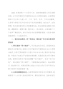 2022年是党的二十大召开之年,我局党的建设工作总体要求是:以习近平新时代中国特色社会主义思想为指导,全面贯彻党的十九大和十九届二中、三中、四中、五中、六中全会精神,认真学习贯彻习近平总书记关于机关党的建设、安全生产、应急管理、防灾减灾救灾等工作的重要论述,突出党的政治建设为统领,建强组