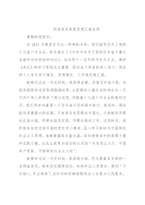 预备党员季度思想汇报范例尊敬的党组织:在2021年建党百年这一特殊的年份,我们胜利召开了党的十九届六中全会,审议通过了《中共中央关于党的百年奋斗重大成就和历史经验的决议》。站在两个一百年的历史交汇点,做好《决议》的学习贯