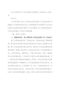 年群体服务管理和关心关爱帮扶青少年健康成长等方面作用突出,成效明显。三、要加强领导,把预防青少年违法犯罪工作列入日程会议之后,各成员单位要加强组织领导,认真落实好以下几项工作:一要认真梳理前期工作。预防青少年违法犯罪,我们以前做了哪些工