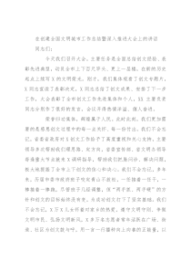 在创建全国文明城市工作总结暨深入推进大会上的讲话同志们:今天我们召开大会,主要任务是全面总结创文经验、表彰先进典型,动员全市上下百尺竿头、更上一层楼,在新的历史起点上续写X的文明荣光。刚才,我们集体观看了创文专题片,X同志宣读了表彰决定,X同志总结了创文成果、安排了下一步工