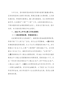 稳中向好,有力推动经济增长和社会稳定。一、2022年上半年主要工作完成情况(一)落实财税政策,积极组织收入在疫情防控常态化的前提下,继续落实落细减税降费政策,积极开展“万人助万企”活动,助力企业纾困解难。一是持续推进增值税留抵退税政策,仅4月当月办理留抵退894户次,涉及税额全