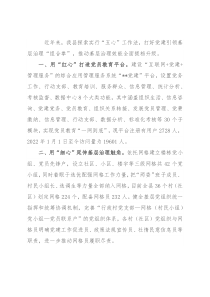 督导50余次,各级党委(党组)书记深入联点村社对接服务30余次,7个社区党组织与驻地单位党支部签订《共驻共建协议书》101份。五、用“热心”提升基层治理温度。探索推行“党建积分制”工作,分行政村、社区、机关等6