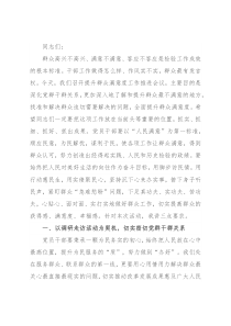 升群众最不满意的地方,找准和解决群众迫切需要解决的问题,全面提升群众满意度。希望同志们一定要把这项工作放在当前头等重要的位置,抓实、抓细、抓好、抓出成果。党员干部要以“人民满意”为第一标准,顺应民意,为民解忧,谋利于民
