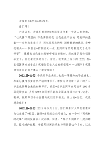 亲爱的2022届*名*宝们:你们好!六月以来,在我们美丽的*校园里流传着一首动人的歌曲,“让我掉下眼泪的不是离别的忧让我依依不舍的是老师的温柔……分别总是在6月回忆是思念的愁涧桥轻轻的晚风亲吻我额头……