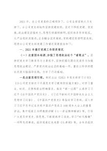 ;适应新形势需要,宣传思想工作和党员教育管理工作的载体有待于进一步丰富和完善;党务人员综合素质有待提升,队伍建设还需要进一步加强。这些问题,会进一步认真总结,在2022年的工作中加以解决。三、2022年工作打算2022年,分公司党支部将继续以习近平新时代中国特色社会主义思想为引领,深入贯彻集团公司