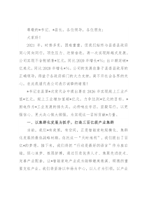比2020年增长*%。公司的发展依靠于县委县政府的正确领导,得益于各政府部门的大力支持,离不开社会各界的关心,在此我谨代表公司表示诚挚的谢意!*书记在县第*次党代会中提出要在2026年实现规上工业产值*亿元,规上工
