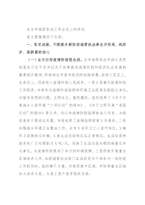 在全市城管执法工作会议上的讲话我主要强调四个方面:一、肯定成绩,不断提升新阶段城管执法事业开好局、起好步、谋新篇的信心(一)全力打好疫情防控阻击战。全市城管执法系统认真贯彻落实习近平总书记关于统筹推进疫情防控和经济社会发展的重要指示精神,积极响应市委市政府的安排部署,坚持人民至上、生命至