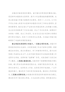 功能、强化政治引领,下大气力解决软弱涣散问题。二是提升服务群众的能力。坚持为人民服务的宗旨,打通联系帮助群众的“最后一公里”,通过实行党员干部连片包户责任制,深入开展党员责任制、党员联系帮扶村民、主题党日