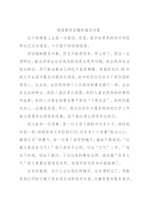 想清楚讲话稿的服务对象这个标题看上去是一句废话。但是,很多起草界的同行却经常忘记这句废话。今天就不妨说道说道。讲话稿的服务对象,而且只能是领导。那么好了,把这一点想明白,就必须学会站在领导的角度去思考问题,说出领导应当说出的话,而不能由着自己的性子直抒胸臆。我曾经在近30年的