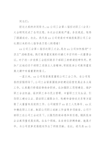 大会,是在xx公司加快推进“十四五”战略落地,践行高质量发展的关键之年召开的一次重要会议,对于进一步发挥工会组织联系干部职工的桥梁纽带作用,更加广泛地动员干部职工发扬主人翁精神,积极投身公司高质量发展大潮中有着重要的意义。一直以来,xx公司党委高度重视公司工会工作,在公司党委的坚强领导下,