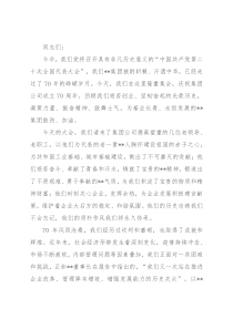 **集团鼓劲、加油。今天的大会,我们请来了集团公司德高望重的几位老领导、老职工,以他们为代表的老一辈**人胸怀建设祖国的赤子之心,为共和国工业基础、城市基础建设,做出了不可磨灭的贡献;他们艰苦奋斗、奉献了青春和汗水,铸就了宝贵的**精神,锻造出了