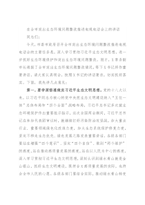 才,X常务副市长通报了全市突出生态环境问题整改情况,等下X书记将作重要讲话,请大家认真领会,按照X书记的讲话要求,切实抓好落实。下面,我先讲几点意见:第一,要学深悟透做实习近平生态文明思想。党的十八大以来,以习近平同志为核心的党中央