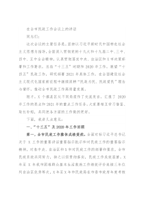 展望“十四五”民政工作,研究部署2021年具体工作,在全面建设社会主义现代化国家新征程中继续深耕“民政为民、民政爱民”理念与情怀,推动全市民政工作高质量发展。刚才,X个旗县区从不同角度作了交流发言,汇报了2020年工作的亮点和2021年的重点工作任务。大家要相互
