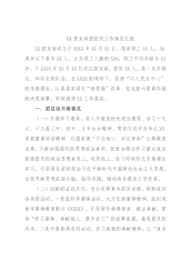知识化的队伍。在XXXX的领导下,坚持“以人民为中心”的发展理念,认真落实深化“放管服”改革、优化提升营商环境的决策部署,积极推进XX工作落实。一、团活动开展情况(一)开展学习教育。深入开展党的先进性教育、学习十九大、十九届三中、四中、五中全会精神、贯彻习近平总书记