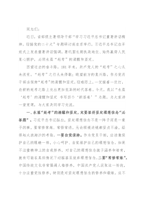 一意帮助群众办好事、办实事。三、永葆“赶考”的清醒和坚定,定要答好践行初心使命“必答题”。中国共产党为人民而生,因人民而兴,必须永远保持同人民群众的血肉联系,始终同人民想在一起、干在一起,这是党执政兴国的最大底气。一要增进“全心全意为人民服务”的情怀涵养。全心全