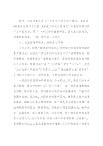 刚才,州发改委汇报了上半年全州经济运行情况,各县市、*高新区分别作了汇报,*通报了有关工作情况,州直相关部门进行了书面发言。等下,*书记将作重要讲话,请大家认真领会,切实抓好落实。下面,我先讲三点意见。一、攻坚克难开新局,成绩来之不易今
