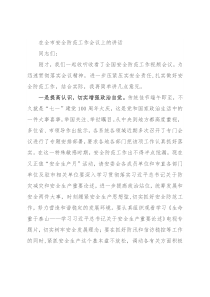 全防范工作出不得半点纰漏,现在又正值“安全生产月”活动,请安委会各成员单位和市直各部门单位及驻市相关单位要深入学习贯彻落实习近平总书记关于防灾减灾和安全生产重要论述,进一步提高政治站位,统筹发展和安全两件大事,时刻绷紧安全生产思想弦,切实抓好安全防范工作,努力营造