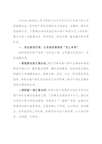 班,进一步弥补知识短板、增强战略思维、提升综合能力。二要加强培土施肥“墩苗”。坚持在培养中使用、在使用中培养,把实践作为最好的课堂、把实战作为最好的训练,持续选派优秀年轻干部挂职锻炼,在重要岗位、吃劲岗位、一线岗位磨砺成长,注重在基层一线增加年轻干部“一把手”经历,丰富实践阅历、砥砺担当