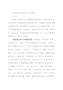 在全市解放思想座谈会上的讲话同志们:思想是行动的先导,思想解放的程度决定工作落实的力度。近年来,我X发展遇到这样那样的问题,从总根源上讲都是思想不解放的问题,是思想僵化、能力退化、担当弱化的问题。我们必须把解放思想作为首要任务,在解放思想中统一思想、凝聚