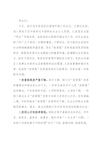 同志们:今天,我们召开政府优化营商环境工作会议,主要任务是,深入贯彻习近平新时代中国特色社会主义思想,认真落实全国“两会”和国务院、省政府优化营商环境各项工作,动员各地各部门和广大干部进一步勤政廉政,干事创业,努力推动全县经济社会持续健康高质量发展。深化“放管服”改革是推进政府职能转变、