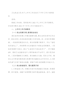 卫生执法大队关于上半年工作总结及下半年工作计划的报告县委:根据工作安排,现将我单位2021年上半年工作开展情况、存在的问题及2021年下半年工作计划报告如下:一、上半年工作开展情况(一)突出党建引领,提高政治站位我队始终把党建工作摆在重要位置,建立由党支部书记负总责、落实专职人员具体抓