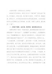 在县政府第一次常务会议上的讲话新的班子已经到位,政府工作这个“接力棒”已经交给了我们,责任重大,使命光荣。我们要牢记使命、尽职尽责,脚踏实地、真抓实干,共同把县政府班子这架机器运转好,为加快房县经济社会发展做出自己的贡献。在这里,我提几点要求,重点做到“六要”。一、要善于谋事