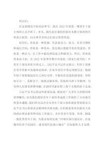 品质、健康的生活情趣,自觉遵守社会公德、家庭美德、职业操守,从细微处做起,规范自己的一言一行,用自己的模范行为引领社会风尚。最后,祝愿本期主体班取得圆满成功!也祝愿青年同志们能够取得能力上的成长、思想上的成熟、工作上的成绩、事业上