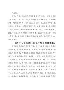 ,*副区长通报了2021年项目工作完成情况,安排部署了2022年项目工作,我完全赞同,请大家认真抓好落实。下面,我就做好今年的项目工作,讲几点意见。一、提高认识,正视差距,充分认识项目工作的重要意义项目建设是县域经济发展的强大动力和重要支撑,关系着发展的质量,决定着发展的