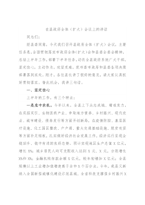 在县政府全体(扩大)会议上的讲话同志们:经县委同意,今天我们召开县政府全体(扩大)会议,主要任务是,全面贯彻落实市政府全体(扩大)会和县委全委会精神,总结上半年工作,部署下半年任务,动员全县政府系统广大干部,坚定信